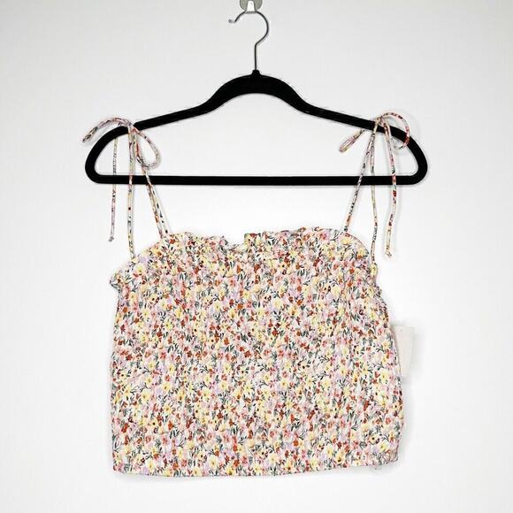 NWT Vero Moda Henna Tie Shoulder Smocked Floral Crop Top Women Birch Lilja SZ L
