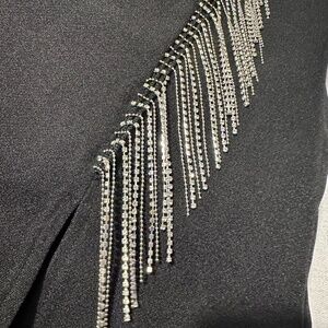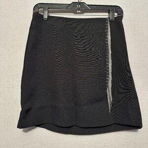 NWT Vero Moda Kasey Rhinestone Fringe Mini Skirt in black. Side zipper. Front offset rhinestone fringe trim. Bottom slit. Unlined. Size small.