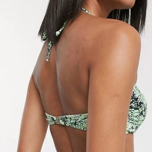 Vero Moda bandeau bikini top with ring detail in green snake print