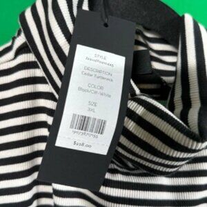 NWT Veronica Beard Cedar Turtleneck with Puffed shoulder Black White Size 3XL