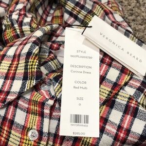 NWT Veronica Beard Corrine Shirt Dress Shirtdress Size 0 Red Multicolored Plaid