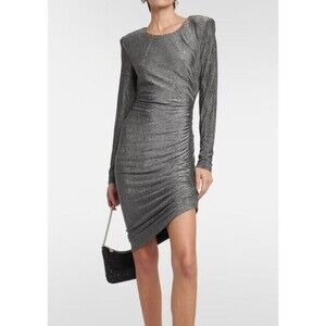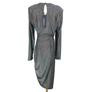 NWT Veronica Beard Cyrus Metallic Long Sleeve Ruched Mini Dress Gunmetal Medium