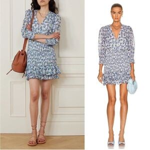 NWT Veronica Beard Darrah Dress Cobalt Multi Smocked Long Sleeve Sz 8