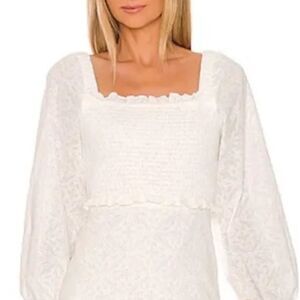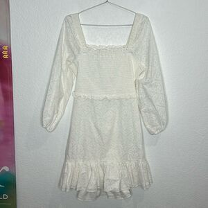 NWT Veronica Beard Denise Dress Lace Ruffle Smocked Bodice White Size 14