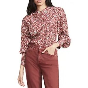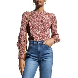tags: cute flattering puff sleeve poet sleeves floral burgundy maroon brown high neck top high end luxury designer revolve Shopbop fwrd boho bohemian cottagecore elegant chic special occasion party professional look business casual