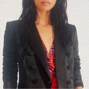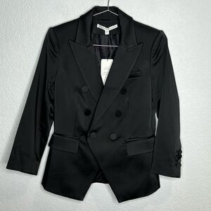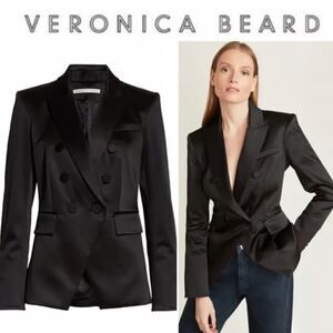 NWT Veronica Beard Empire Dickey Double Breasted Jacket Black Satin Size 4