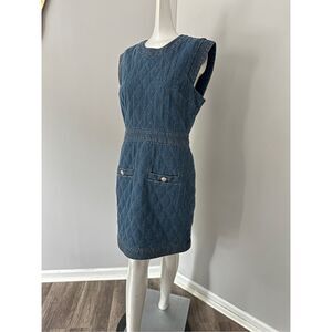 NWT Veronica Beard Ginny Quilted Lined Denim Sleeveless Dress Bright Blue Size 8