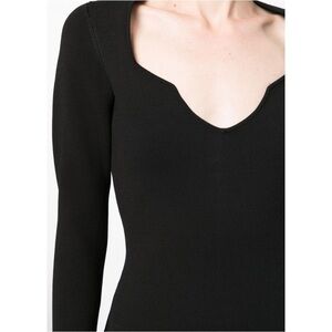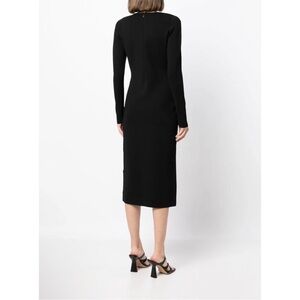 Imka V-neck dress from VERONICA BEARD featuring black, knitted construction, V-neck, long sleeves, fitted waistline and mid-length.