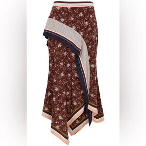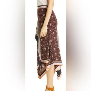 NWT Veronica Beard Kandi Scarf Print Handkerchief Hem Silk Skirt Multi Size 10