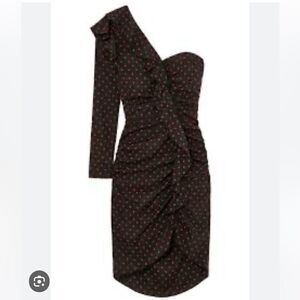NWT Veronica Beard Leona Dress Black/Red Polka Dot One Shoulder Ruffle Size 2