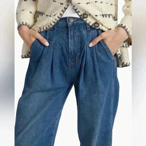 NWT Veronica Beard Mia High Rise Pleated Wide Leg Jeans Vintage Globetrotter 26