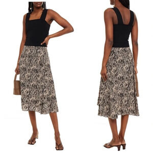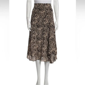 NWT Veronica Beard Ramos Pleated Snake Print Silk Midi Skirt Size 2