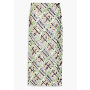 A glitzy plaid pattern crafted from sparkly sequins and beads adorns this elevated midi/maxi-length skirt.