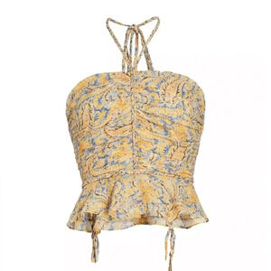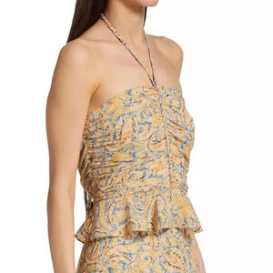 NWT Veronica Beard Silk Arienne Gathered Halterneck Top Yellow and Blue Size 14