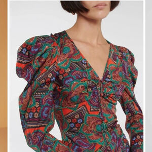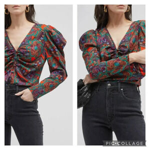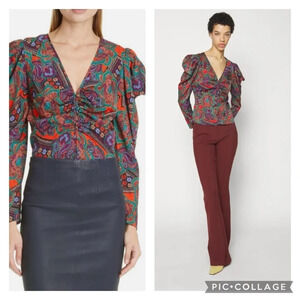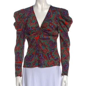 NWT Veronica Beard Simmons Puff Sleeve Silk Floral Paisley Long Sleeve Blouse 0