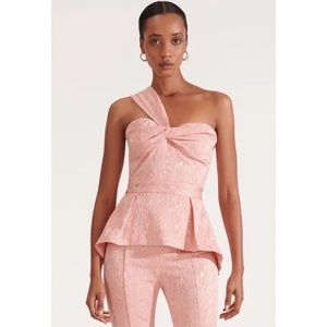 NWT Veronica Beard Sufiana Moire Peplum Top Blush Pink One Shoulder