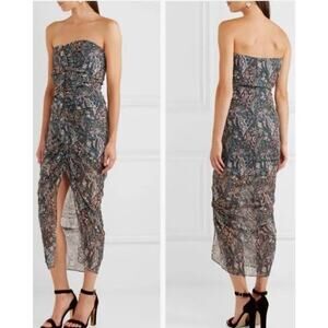 NWT Veronica Beard Sz 4 Peyton Strapless Ruched Sheer Floral Midi Lnd Midi Dress