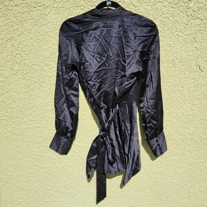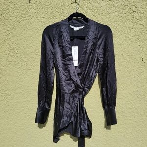 NWT Veronica Beard Viv Black 100% Silk Wrap Blouse