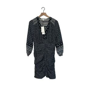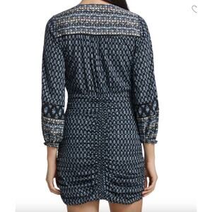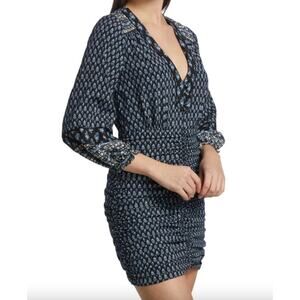 This fitted minidress is crafted of ruched stretch-silk with a floral print.