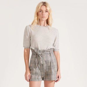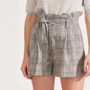 NWT Veronica Beard blue and cream plaid cotton wool blend shorts