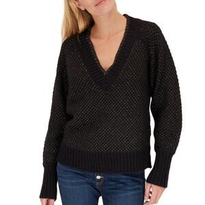 NWT Veronica Beard Mirnie Metallic V-Neck Sweater Relaxed Oversized XL