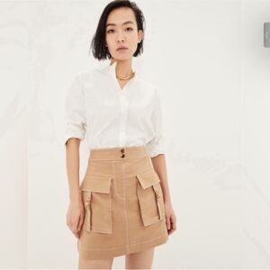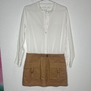 The Jennings is the newest addition to our bestselling series of mixed-media garments. Pre-layered for maximum impact, minimal effort, the dress combines a twill miniskirt with a crisp button-down that peeks out from the hem for an extra dose of nonchalance. Cargo pockets and contrast-color stitching complete the look. Pair with sky-high stilettos for a girls' night out-the ultimate in relaxed meets refined.