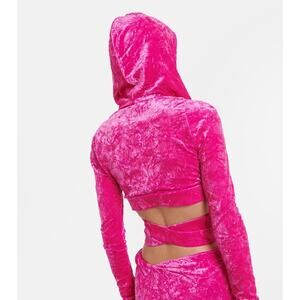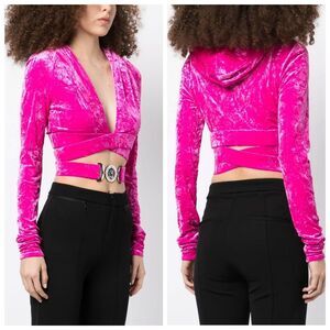 NWT Versace 40 US 4 Runway Biggie Pink Crushed Velvet Hooded Crop Top $1,625
