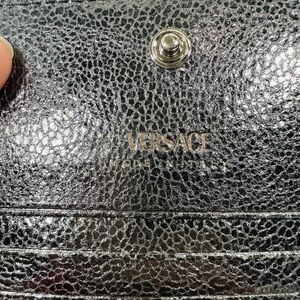 NWT Versace Bifold V Virtus Logo Leather Wallet Metallic Black Grey $625
