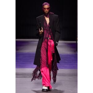 A rare and iconic piece from the Versace Spring Summer 2023 Runway, Look No. 19. This sheer zebra plissé dress features a striking red-and-black design with fluid movement and bold animal-print artistry. A true collector’s item, also seen worn by Barbara Palvin, showcasing its high-fashion appeal and runway authenticity.