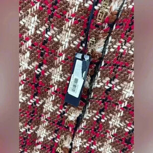 NWT Versace Tweed Boucle Midi Skirt Front Slit Gold Details Black Red Size 38 /2