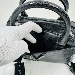 NWT Versace Virtus Black Metallic Textured Leather Top Handle Crossbody Bag