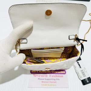 NWT Versace Virtus Mini White Quilted Leather Crossbody Bag with Gold Chain
