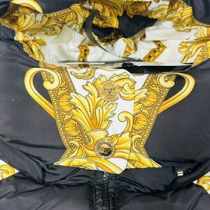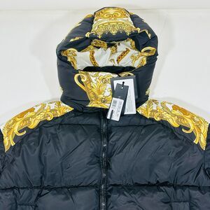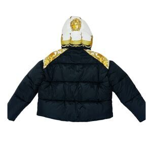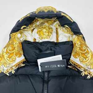 NWT Versace Women 42 US M Medusa Barocco Black Gold Puffer Jacket Hoodie $2,250