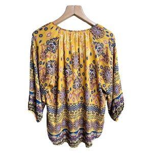 Women’s size medium Mati blouse by Verse. Pretty golden yellow with v-neck and slightly billowed sleeves.