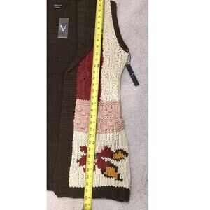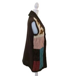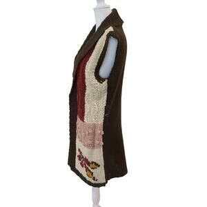Vertigo Womens L Chunky Crochet Long Sweater Vest Brown Patchwork Boho Western