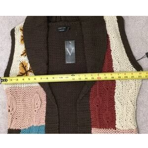 Add a pop of color to your wardrobe with this NWT Vertigo Chunky Knit Sweater Vest in Brown. The vest features an open front and sleeveless design, making it perfect for layering over a long-sleeved shirt or blouse. The color block pattern and patchwork accents give it a unique and eclectic look that is perfect for any occasion, whether it be casual, workwear, or travel. See the detailed pictures for the excellent new with tags condition of this item.