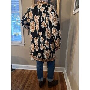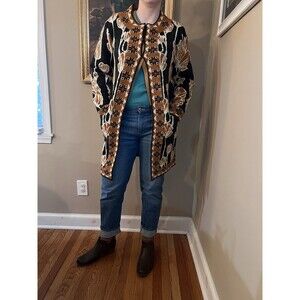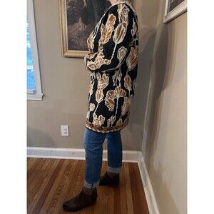 Wrap yourself in the artistic embrace of the Vertigo Paris Floral Vines Intarsia Cardigan, a chic addition to any wardrobe. This women's size small sweater showcases an elaborate floral pattern that blooms across its surface, embodying the essence of spring with every wear. Its open-style design ensures a comfortable fit, perfect for layering over your favorite tops and dresses.