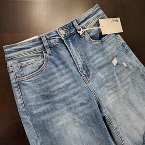 New with tags Vervet Crystal 90's Vintage Jeans. Classic 5 pocket design in a light distressed wash with wide leg and side slits.