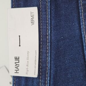 new with tags Vervet sz 25. high rise skinny jeans. 5 pocket button fly. 90.5% cotton, 7.5% polyester, 2% spandex. 10" rise, 32" inseam Haylie (J1-004)