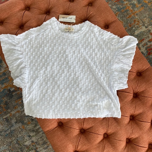 NWT Very J New In White Textured Boxy Tee with Flutter Sleeves. Sz M