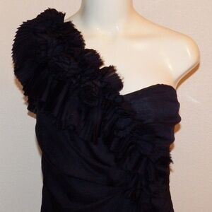 NWT Very J One Shoulder Dress Navy Blue Size Small Ruffle Asymmetrical Club Prom