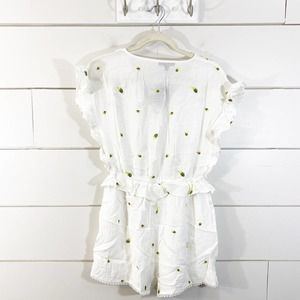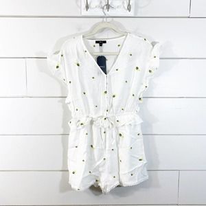 NWT Very J White Palm Embroidered Ruffle Romper Size Small