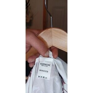 This NWT Very Pretty Bloomchic Floral Shirt in size 18-20 is a stylish and feminine piece perfect for summer occasions. The off the shoulder neckline, flared sleeves, and pink floral pattern give it a girlish and trendy look. Made from polyester, this pullover shirt is machine washable for easy care. The regular fit and casual style make it a comfortable and versatile addition to any woman's wardrobe.
