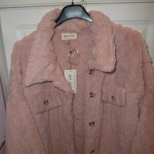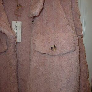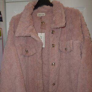 NWT VeryJ New In Super Soft Fleece Fur Jacket Shacket Button Down In Blush 1X
