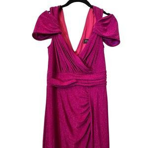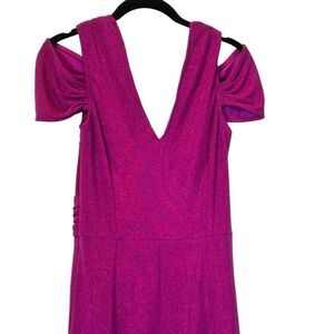 NWT Vfshow Cold Shoulder Ruched Silver Metallic Pink Maxi Dress Small