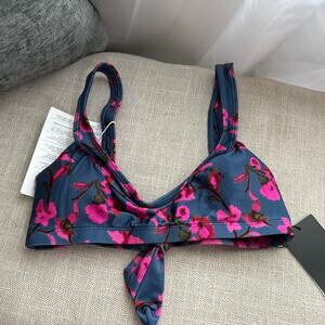 NWT ViX Anthropologie Fiore Floral Bikini Top Blue Tie Back Medium