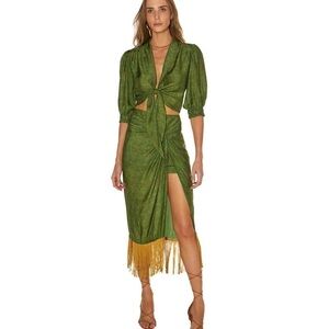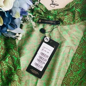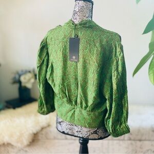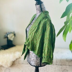 NWT ViX By Paula Hermany Namaste Mel Tie Crop Blouse in Green Multi, Size Large
