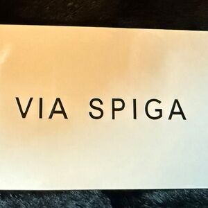 Beautiful NWT Via Spiga black faux fur jacket with gold zipper detail.