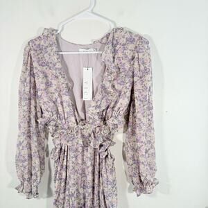 NWT Vici Lush Always A Gal Purple Ruffle Floral Side Cutout Mini Dress Small New