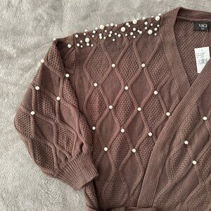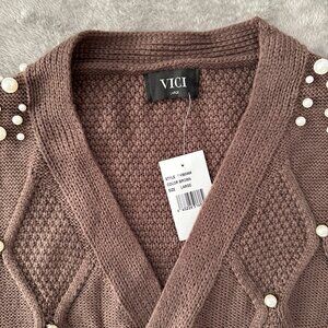 New with tags, a beautiful sweater from Vici. Love the pearl details! Women's size large.